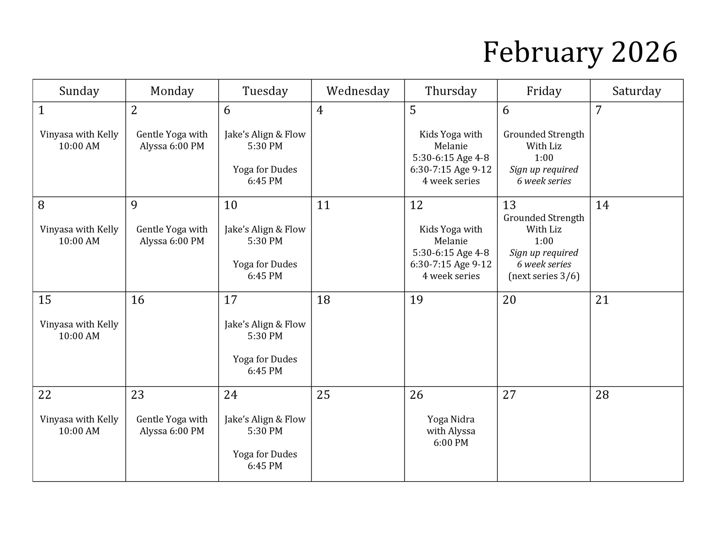 Sunday Vinyasa Flow with Kelly 10:00 -11:15 am